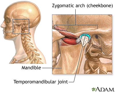 Dental ProblemsJaw clenching or teeth grinding, during sleep, are signs of temporomandibular joint (TMJ) dysfunction. TMJ pain can occur in the ear, cheek, temples, neck, or shoulders. This condition often coexists with chronic tension headache. Some people with TMJ dysfunction may see improvement in tension-type headaches from procedures or exercise therapies that specifically address the dental condition.