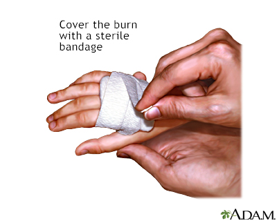 - If fingers or toes have been burned, separate them with dry, sterile, non-stick bandages.