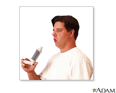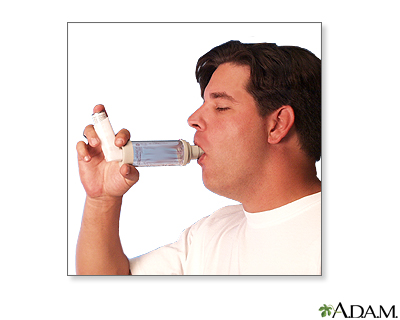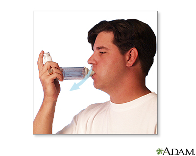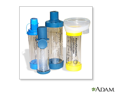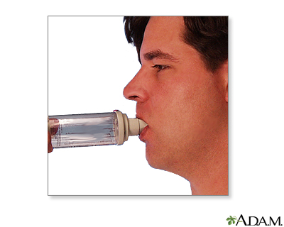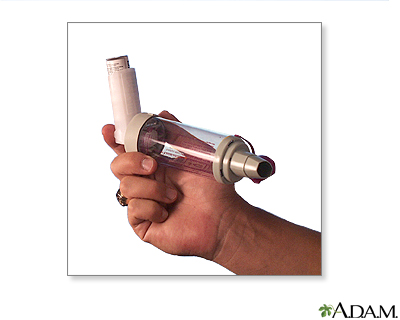 Metered-dose inhaler (MDI) administration - with spacer; Asthma - inhaler with spacer; Reactive airway disease - inhaler with spacer; Bronchial asthma - inhaler with spacerMetered-dose inhalers (MDIs) usually have 3 parts: