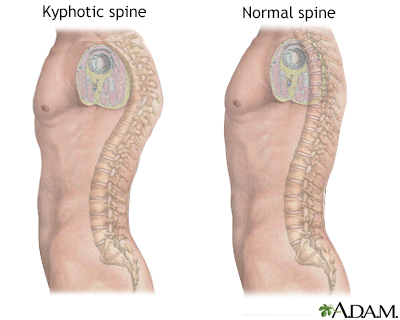 - Adult degenerative scoliosis, a condition that typically develops after age 50. This condition is due to disk degeneration, which is usually secondary to a primary condition such as osteoporosis (thinning bones) or arthritis. Adults with degenerative scoliosis may also develop kyphosis (hunched back).