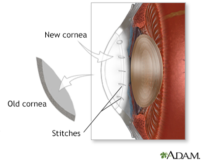 Keratoplasty - discharge; Penetrating keratoplasty - discharge; Lamellar keratoplasty - discharge; DSEK - discharge; DMEK - dischargeThe cornea is the clear outer lens on the front of the eye. A corneal transplant is surgery to replace the cornea with tissue from a donor. It is one of the most common transplants done.