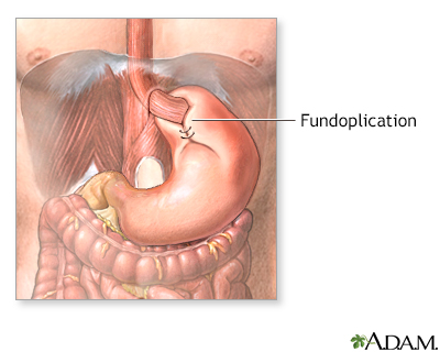 A band of muscle fibers, the lower esophageal sphincter, closes off the esophagus from the stomach. If the sphincter does not close properly, food and liquid can move backward into the esophagus and cause heartburn and other symptoms known as gastroesophageal disease (GERD). To alleviate symptoms dietary changes and medications are prescribed. For a patient who has persistent symptoms despite medical treatment, an anti-reflux operation may be an option.