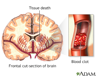 Cerebrovascular disease; CVA; Cerebral infarction; Cerebral hemorrhage; Ischemic stroke; Stroke - ischemic; Cerebrovascular accident; Stroke - hemorrhagic; Carotid artery - strokeA stroke occurs when blood flow to a part of the brain stops. A stroke is sometimes called a "brain attack."