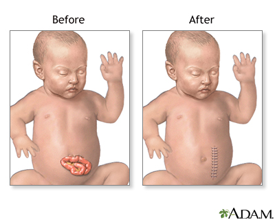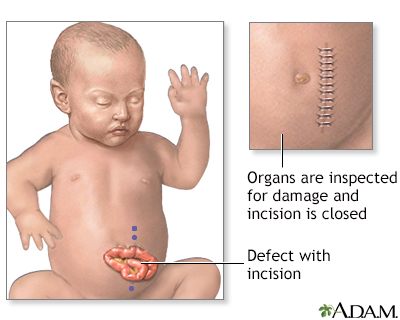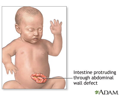 Birth defect - gastroschisis; Abdominal wall defect - infant; Abdominal wall defect - neonate; Abdominal wall defect - newbornGastroschisis is a birth defect in which an infant's intestines are outside of the body because of a hole in the abdominal wall.