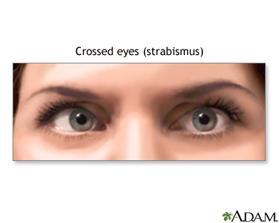 Crossed eyes; Esotropia; Exotropia; Hypotropia; Hypertropia; Squint; Walleye; Misalignment of the eyesStrabismus is a disorder in which both eyes do not line up in the same direction. Therefore, they do not look at the same object at the same time. The most common form of strabismus is known as "crossed eyes."