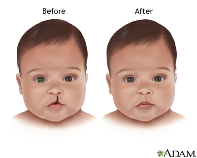 Cleft lip and cleft palate repair is surgery to fix birth defects of the upper lip and palate (roof of the mouth).