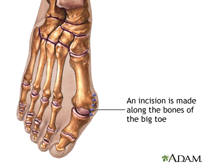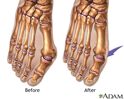 Bunion removal is surgery to treat deformed bones of the big toe and foot. A bunion occurs when the big toe points outward toward the second toe, fo...