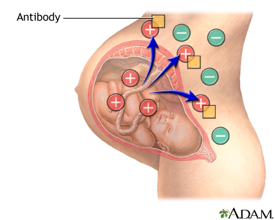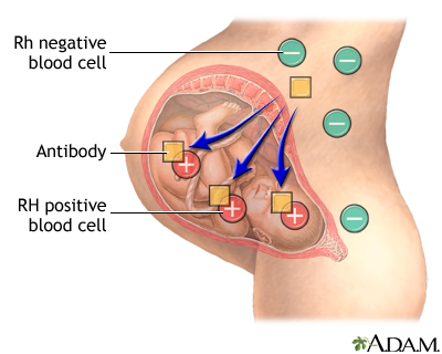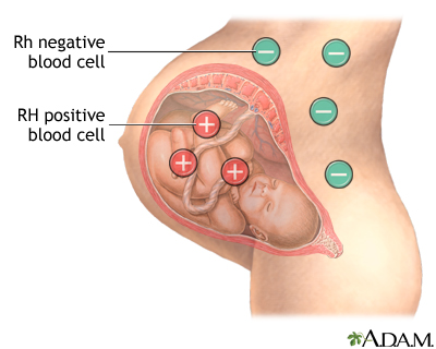 Rh-induced hemolytic disease of the newborn; Erythroblastosis fetalisRh incompatibility is a condition that develops when a pregnant woman has Rh-negative blood and the baby in her womb has Rh-positive blood.