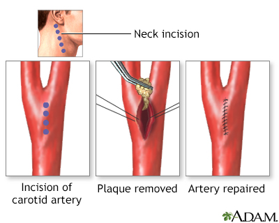 Carotid endarterectomy; CAS surgery; Carotid artery stenosis - surgery; Endarterectomy - carotid arteryCarotid artery surgery is a procedure to treat carotid artery disease.