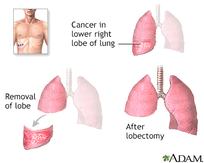 - Lobectomy, to remove one or more lobes of a lung