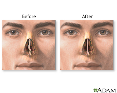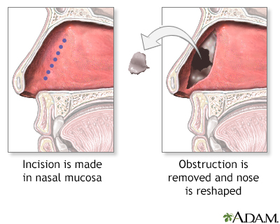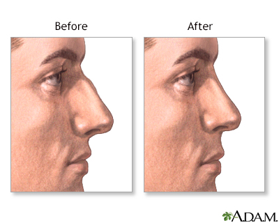 Cosmetic nose surgery; Nose job - rhinoplastyRhinoplasty is surgery to repair or reshape the nose.