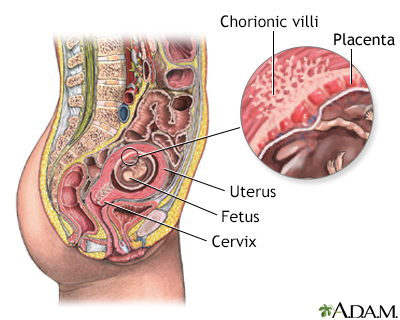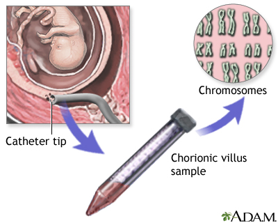 CVS; Pregnancy - CVS; Genetic counseling - CVSChorionic villus sampling (CVS) is a test some pregnant women have to screen their baby for genetic problems.
