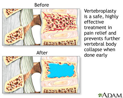 Osteoporosis - vertebroplastyVertebroplasty is often an outpatient procedure used to treat painful compression fractures in the spine. In a compression fracture, all or part of a spine bone collapses.